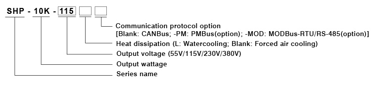 Four DC output models are provided, including 55V, 115V, 230V and 380V, which serve various industries, such as automatic industrial equipment, charging energy storage systems, 5G communication equipment, centralized bus power, and many other applications. In addition, thanks to the fully digital design, the output voltage and current are programmable with CANBus, and optionally PMBus or MODBus communication protocols. In addition, various built-in monitoring signals are provided, such as over temperature alarm, DC-OK, fan fail alarm, AC fail alarm functions, which allow users to quickly control and integrate system equipment. Also, while applications in many industrial fields may be exposed to various harsh environments, the models are able to operate in a very wide temperature range covering -30oC ~ +50oC under full load conditions. SHP-10K also provides a choice of two different cooling methods, the forced-air cooling type with built-in fans and the water-cooling type, either of which can be easily selected according to the characteristics of the equipment or the environment.