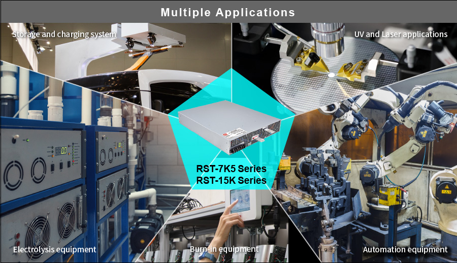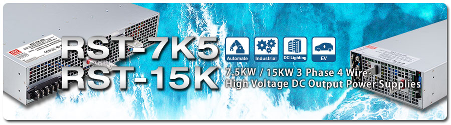 The world leader in standard power supply — MEAN WELL, in order to fulfill high-power industrial applications, such as high-voltage charging systems, centralized bus power and other new applications. MEAN WELL has launched its latest three-phase four-wire AC input RST-7K5(7,500W) and RST-15K(15,000W) power supply with 95% high efficiency design, and the maximum parallel output power up to 30kW.