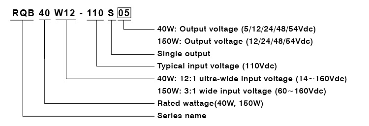RQB150W3 : 66~160Vdc (3 : 1) - 4KVac I/O isolation