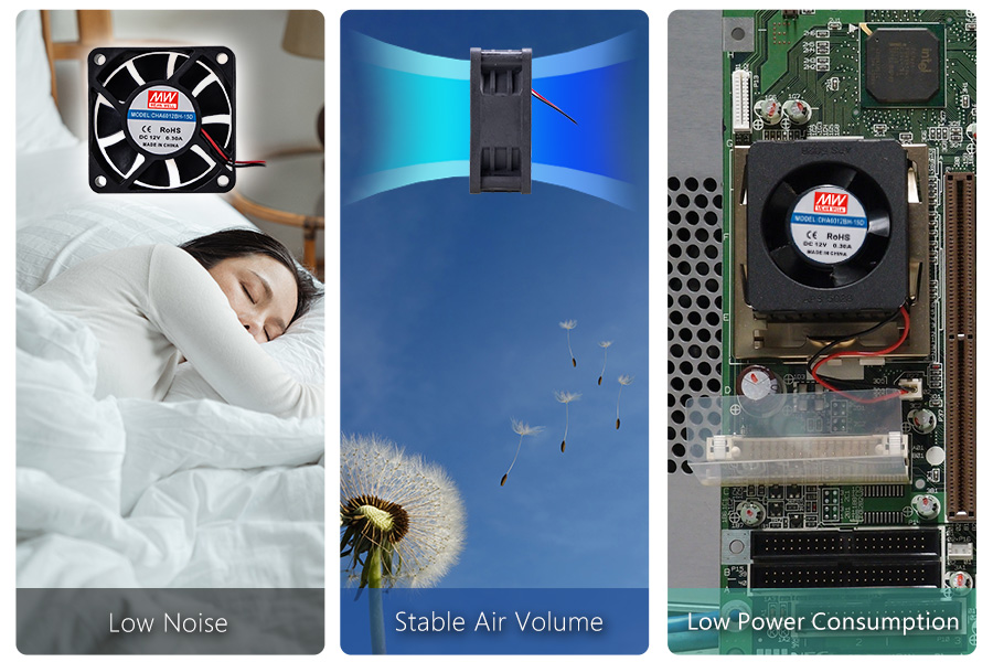 The fan is an active cooling element, which is mainly used in household electronics or industrial product equipment. It has the characteristics of low noise, low power consumption, and it can continuously provide the stable air volume that would avoid the equipment/devices malfunction caused by overheating during use.
