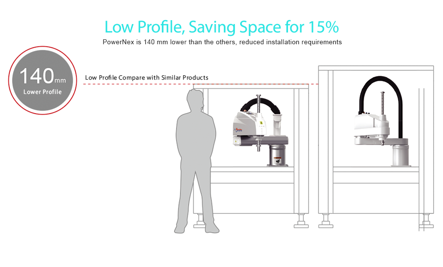 POWERNEX's SCARA (Selective Compliance Assembly Robot Arm) robot combines aesthetics and engineering application design that can be flexibly used in the production line with its compact size. It adopts components and accessories of well-known brands like Japan Lion and Nidec Drive Technology Corp.