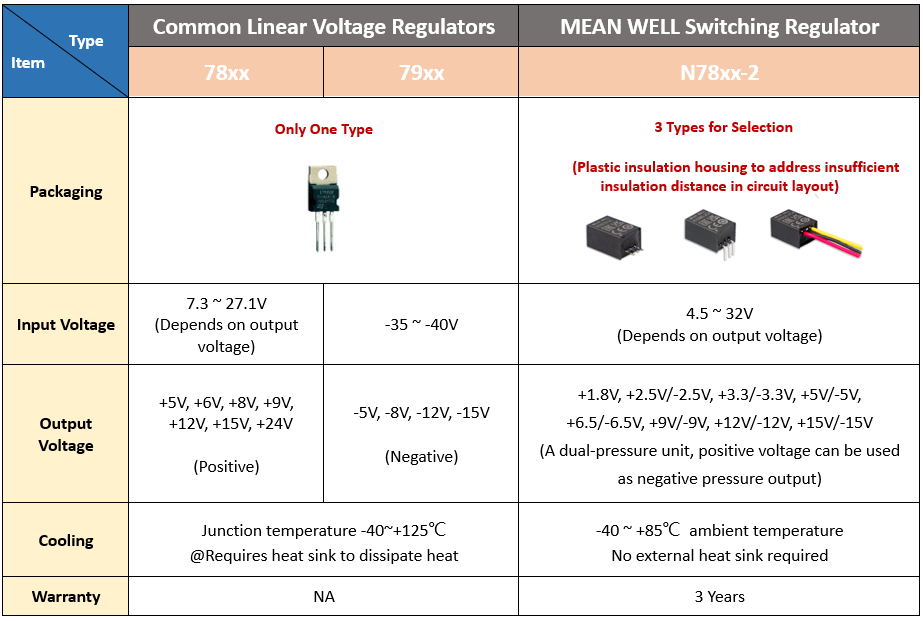 After the launch of the 1A non-isolated miniaturized high efficiency DC-DC switching regulator N78xx series, MEAN WELL has introduced a new 2A model, the N78xx-2 series. This new series is designed to be fully pin-compatible with the traditional TO-220 packaged 78xx and 79xx linear voltage regulators, facilitating direct replacement. The key benefits of the N78xx-2 series include an efficiency of up to 96% and eliminating the need for additional heatsinking, which simplifies heat management for system designers. It is particularly well-suited for integration into various electronic instruments, power supplies, and distributed circuit systems.