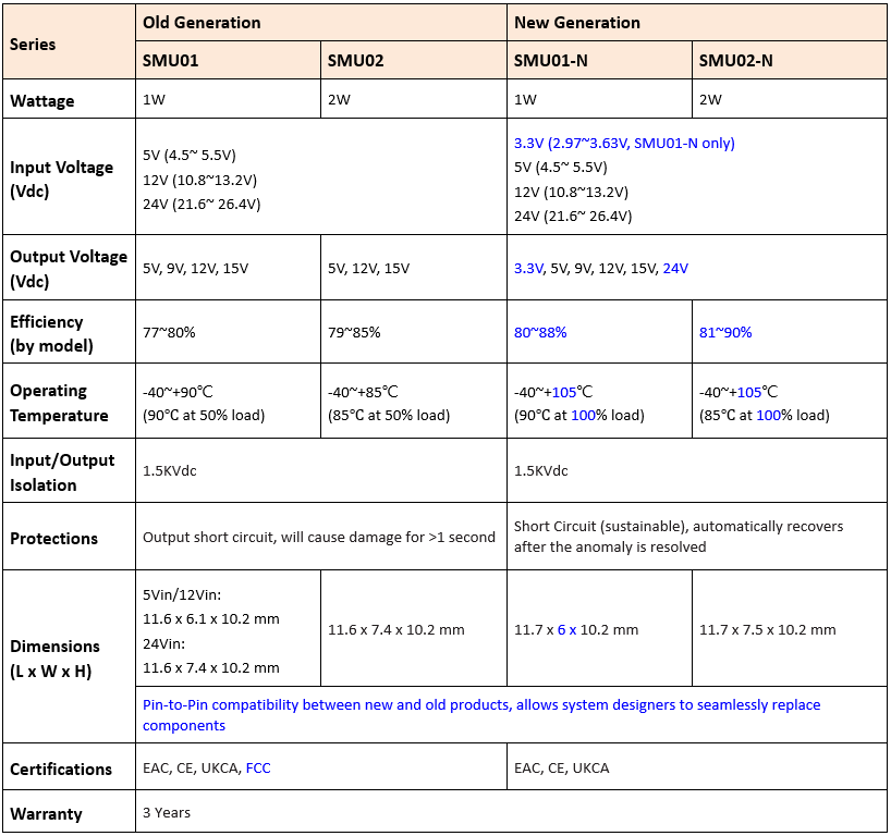 The MEAN WELL SMU01/SMU02 series has been a trusted solution for over a decade, with cumulative sales exceeding hundreds of thousands of units. To address the growing demand for enhanced cost-performance efficiency, MEAN WELL is introducing the new SMU01-N/SMU02-N series—1W/2W unregulated, isolated DC-DC converters.