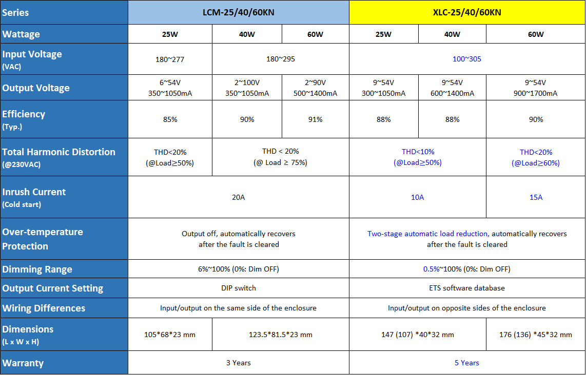 At MEAN WELL, we take pride in being a global leader in standard power supply solutions. Since introducing our first power supply with KNX technology in 2017, we have been committed to advancing KNX building automation control solutions and continually expanding our range of KNX-compliant products that meet international standards. Following the successful launch of our KNX-standard AC/DC constant current LED driver series (LCM-KN) and constant voltage driver series (PWM-KN), we are excited to introduce the XLC-25/40/60KN series, further enhancing our portfolio of LED drivers with built-in KNX interface protocols.