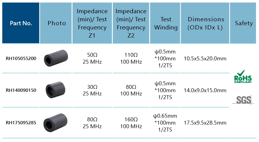 The products can efficiently and cost effectively solve the problems of conducted and radiated electromagnetic interference (EMI). In addition. they significantly filter out excess noise without affecting signal integrity, and provides excellent suppression of high-frequency noise. It is a highly stable and reliable EMI magnetic core.
