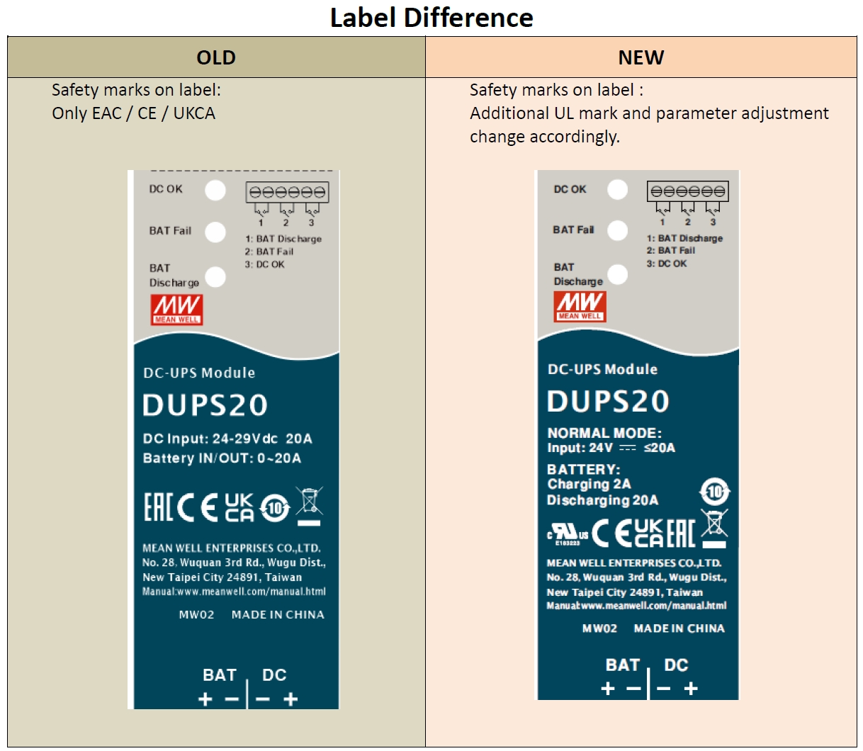 Product Change Notice: CB/UL Safety extension of DUPS20