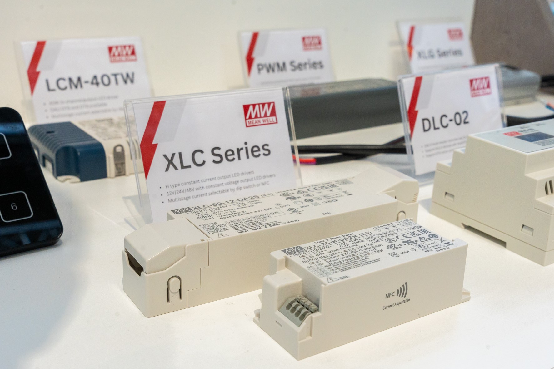 The highlight of the DALI co-exhibit booth was MEAN WELL's newest LED drivers: the XLN and XLC series. Both models offer the flexibility to select between H-type constant current and constant voltage, ensuring stable performance and efficiency. Setting the constant current version apart is its multistage current selectability, facilitated by dip switches or NFC technology. The interactive demonstration of NFC features within the MEAN WELL APP left attendees impressed, highlighting MEAN WELL's dedication on user-friendly design. Additionally, the XLN series are encapsulated with a plastic housing certificated with IP67, ensuring durability and reliability even in challenging environments. On the other side, the XLC series provides the option of the strain-relief cap, simplifying the cable attachment and removal process while protecting the cable and the end piece.