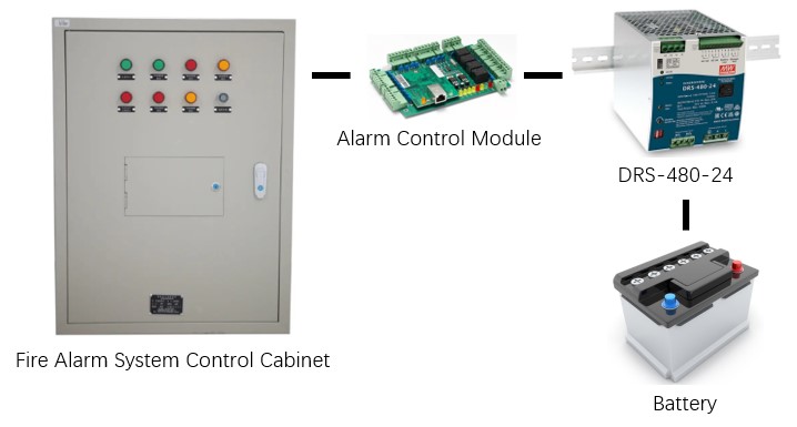 Case Study: DRS's adaptability allows it to be integrated into a wide range of security and fire protection systems. The security system power distribution cabinet shown below is composed of the DRS-480-24 power supply, backup battery pack and alarm control module. DRS series products are used to replace the traditional power distribution cabinet design, which can greatly reduce distribution cabinet space and simplify wiring, making on-site installation and debugging easier.