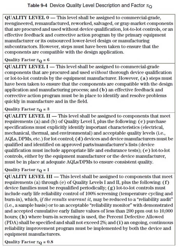 Table 1. Device Quality Level Description and Factor of TELCORDIA SR/TR-332(Bellcore)